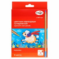 Карандаши цветные 18 цветов Гамма «Мультики» (L=174мм, D=7мм, d=4мм, 6гр, супермягкие) картон. упаковка, европодвес (80220217), 12 уп.: сравнение цен, характеристики, фото, актуальное наличие и цены.
