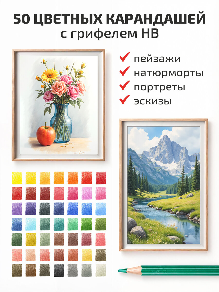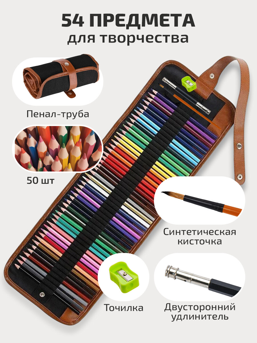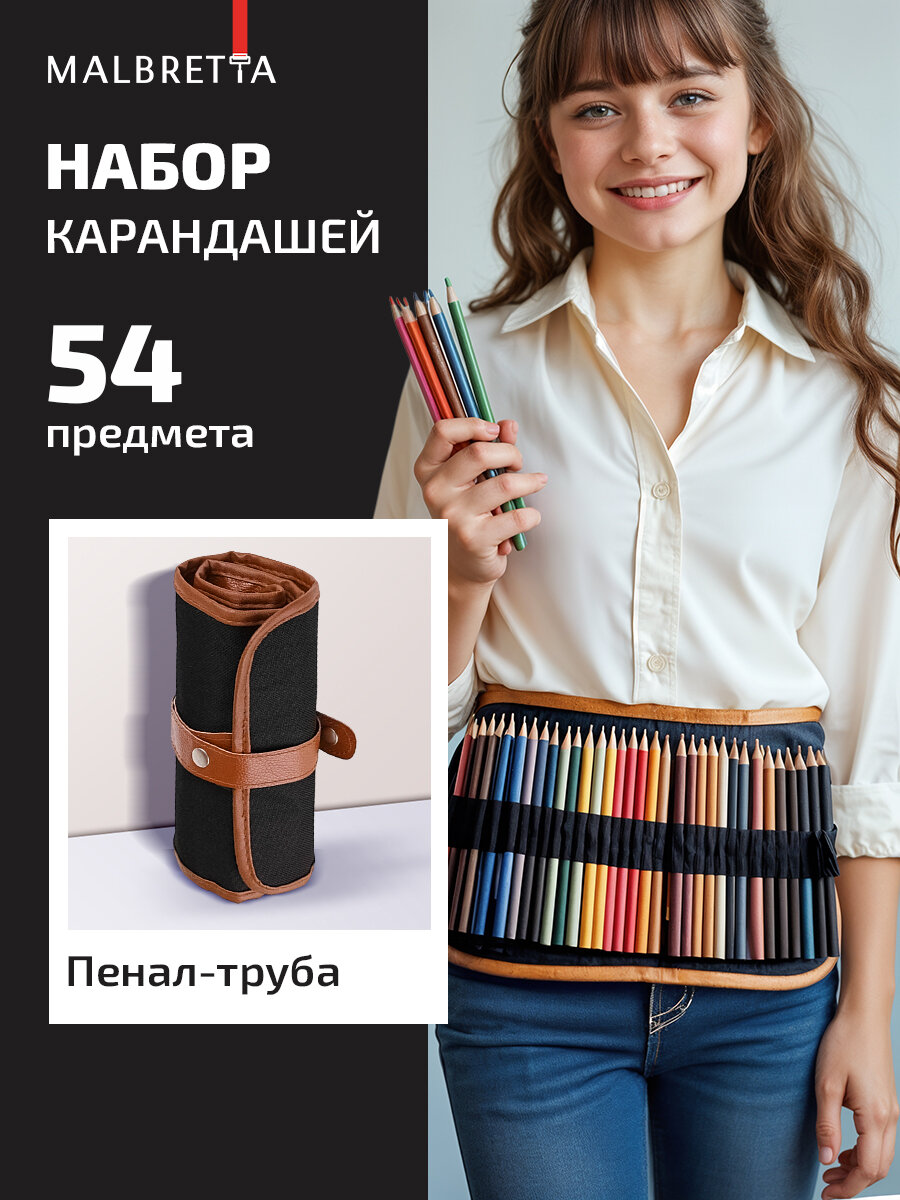 Карандаши цветные MALBRETTA набор для рисования, 52 цвета, 56 предметов в наборе, круглые, в пенале: сравнение цен, характеристики, фото, актуальное наличие и цены.