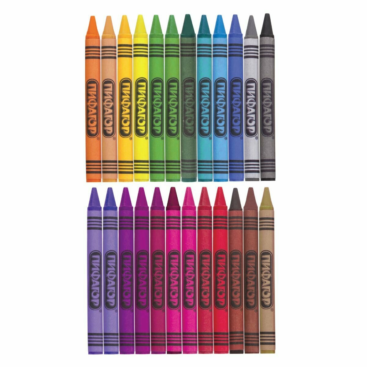 Карандаши восковые 24 цвета Пифагор «Солнышко» (D=7.4мм, круглый) (227281), 36 уп.: сравнение цен, характеристики, фото, актуальное наличие и цены.