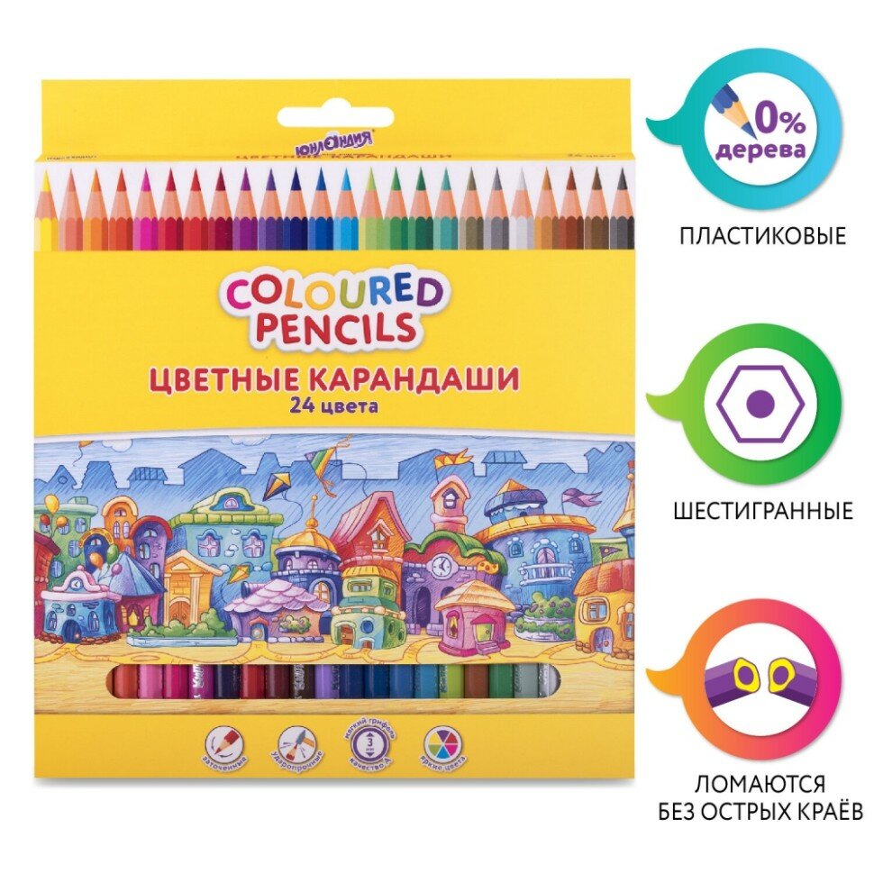 Карандаши юнландия 181838, комплект 6 шт. Карандаши цветные юнландия "домики", 24 цвета, пластиковые, классические, грифель мягкий 3 мм, 181838Карандаши цветные юнландия "домики" - мягкие классические карандаши, которые порадуют своей яркостью детей и их родителей. Забавные сюжеты на упаковке, а также ребусы на обороте сделают процесс рисования невероятно увлекательным. Набор состоит из 24 цветов: черный, темно-синий, синий, голубой, салатовый, зеленый, темно-зеленый, болотный, серо-зеленый, желтый, оранжевый, темно-оранжевый, персиковый, фуксия, розовый, красный, темно-красный, бордовый, песочный, серый, светло-серый, фиолетовый, темно-коричневый, коричневый. Шестигранная форма сечения корпуса позволяет не скатываться карандашу с поверхности стола во время занятий рисованием. Они изготовлены из высококачественного пластика и имеют лакированный корпус. Качество исполнения гарантирует легкую заточку. Грифель диаметром 3 мм обладает повышенной прочностью. Все карандаши заточены и поставляются в картонной упаковке с европодвесом. Количество цветов: 24. Количество карандашей: 24. Серия: Домики. Форма сечения корпуса: шестигранная. Материал корпуса: пластик. Лакированный корпус: да. Грифель повышенной прочности: да. Заточка грифеля: да. Легко затачиваются: да. Диаметр грифеля: 3 мм. Длина карандаша: 176 мм. Упаковка: картонная коробка c европодвесом Бренд - юнландия. Производитель - Китай. . Штрихкод - 4606224326221Характеристики упаковки: Вес:0,1920 кг. Объем: 0,0004 м3. Размеры: 0,8x20,2x17,5 см.