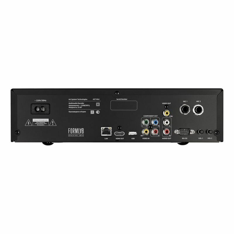AST mini – Компактная караоке-система для квартиры, загородного дома, караоке-комнаты или маленького кафе. Встроенная профессиональная обработка голоса. Каталог песен оптимизирован и включает только самое лучшее и самое популярное. Можно подключиться по Wi-Fi и управлять системой из любого места с помощью планшета или смартфона. Можно управлять расположением строк песни на экране и менять их количество. Можно больше не гадать, когда и кому петь в дуэте - мужская и женская партия раскрашены разными цветами. Встроенный поиск исправляет опечатки, ищет сразу везде (в названии, тексте песни, имени исполнителя) и находит нужное даже по неполным данным. Система выставления баллов реагирует не на громкость пения, а на качество исполнения песни. А ещё AST Mini - это запись исполнения в профессиональном качестве, возможность загрузки и исполнения собственных фонограмм, проигрывание фоновой музыки в паузах, медиаплеер для воспроизведения видео и аудио и просмотра слайдшоу. И всё это в одном устройстве!