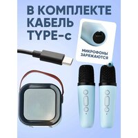 Караоке система, портативная, RGB-подсветка, Bluetooth 5,1, 2 микрофона, голубой