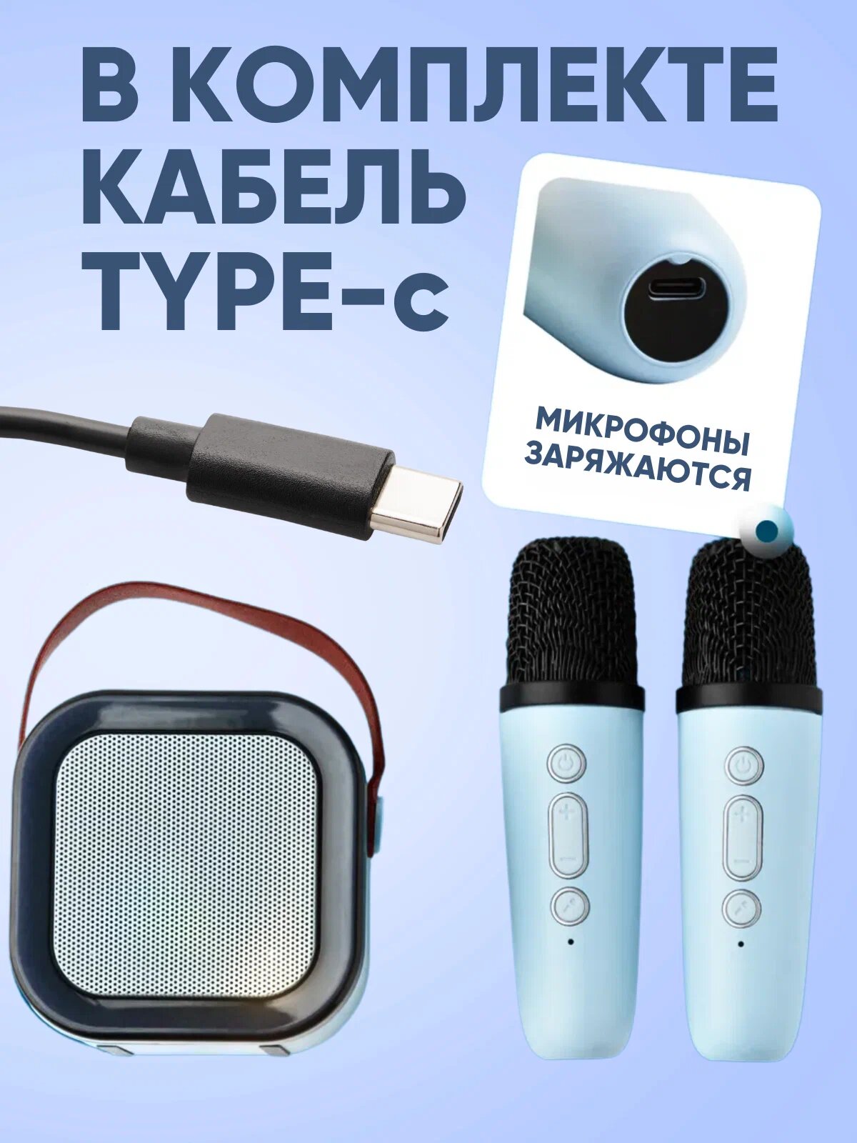 Купить Караоке система, портативная, RGB-подсветка, Bluetooth 5,1, 2 микрофона, голубой с доставкой по всей России.
