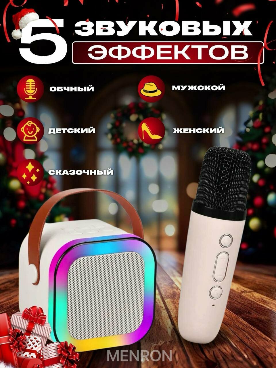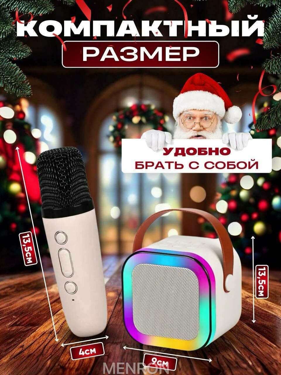 Представляем вам активный и яркий способ проводить время с друзьями и семьей - аккумуляторная аудиосистема караоке со светящейся функцией RGB подсветки. Эта маленькая и беспроводная компьютерная аудиосистема предлагает вам всю необходимую функциональность, чтобы весело провести досуг на любом мероприятии - будь то день рождения, юбилей, свадьба, девичник, детский утренник или просто вечеринка в кругу друзей. Она сочетает в себе высокое качество звука с беспроводным мини-микрофоном, обеспечивая профессиональные звуковые эффекты. Благодаря простому управлению одной кнопкой и высококачественной кожаной ручке она удобна и портативна. RGB подсветка: Выберите один из 5 регулируемых светодиодных световых эффектов, которые синхронизируются с музыкой, создавая потрясающие визуальные впечатления. Повысьте удовольствие от прослушивания с помощью опций динамического освещения. (Короткое нажатие для переключения световых эффектов, длительное нажатие в течение 2 секунд для выключения светодиодной подсветки). Караоке-микрофон, оснащенный беспроводным микрофоном и встроенной Bluetooth-технологией 5.1, работает в радиусе 10 метров. Эта портативная музыкальная акустическая система с ручкой оснащена Bluetooth-технологией, что позволяет соединять ее с любыми совместимыми устройствами без проводов и сложных настроек. Наслаждайтесь стабильным подключением ко всем вашим Bluetooth-совместимым устройствам, не беспокоясь о внезапных прерываниях сигнала. Передовая технология декодирования аудио в формате MP3 обеспечивает четкое и мощное звучание. Благодаря встроенному 4-ядерному чипу AR для интеллектуального улучшения голоса, он устраняет искажения, обратную связь и повышает четкость звука, обеспечивая высококачественное аудиовизуальное восприятие. Индикатор мигает синим, когда он не подключен, остается сплошным синим при успешном сопряжении и становится красным во время зарядки, затем гаснет при полной зарядке. После сопряжения просто нажмите кнопку воспроизведения, чтобы запустить или приостановить воспроизведение музыки. Или подключить mini колонку с помощью AUX или Type C. Вы раскроете свой талант, подпевая любимым песням. Два миниатюрных портативных микрофона высокого качества идут в комплекте. Есть способность изменения голос. Каждый подберёт для себя лучший режим звучания. Благодаря встроенному аккумулятору с продолжительным сроком службы, вы можете наслаждаться музыкой и весельем в течение долгого времени, не беспокоясь о зарядке. Вы сможете взять мини акустику для телефона с собой на пикник, в поход или на пляж и создавать праздничную атмосферу в любой точке мира. Работает без подзарядки до 6 часов. Независимо от того, какой повод или праздник у вас на горизонте, эта переносная акустическая система сделает его незабываемым. Подарите феерию эмоций близким на новоселье, новый год или просто так, и они оценят ваше внимание и заботу. Будьте жизнерадостными и веселыми каждое мгновение вместе с надежной и качественной музыкой!