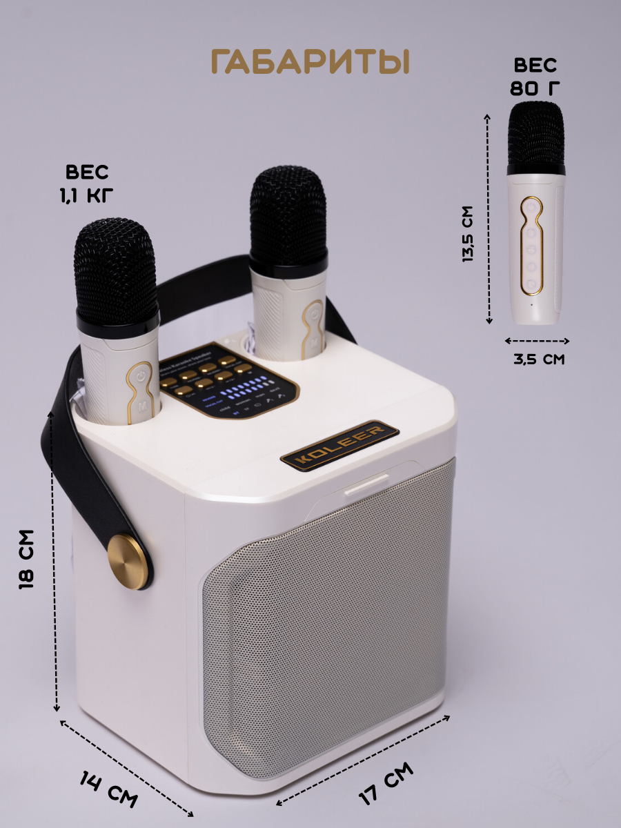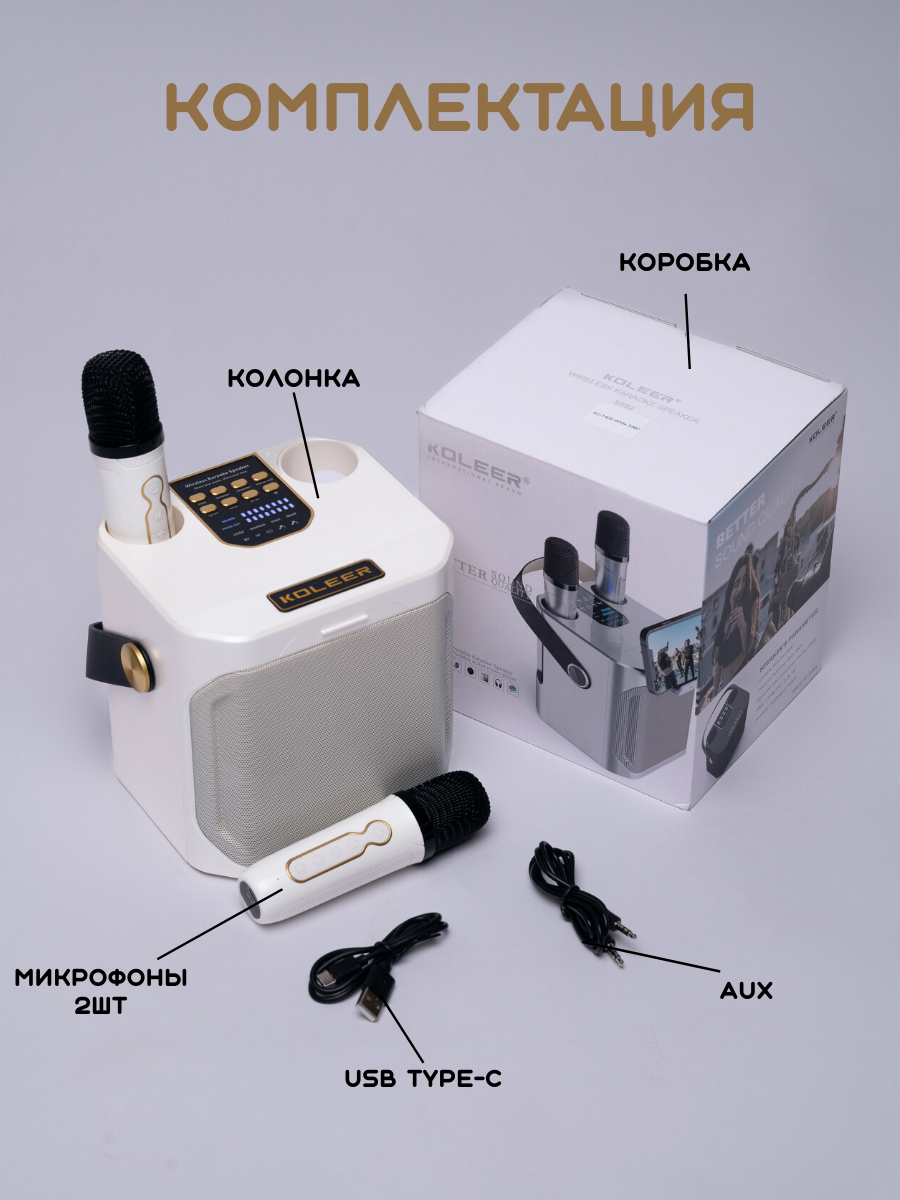 | Подробная комплектация | Караоке система, два микрофона, AUX, Type-C |
