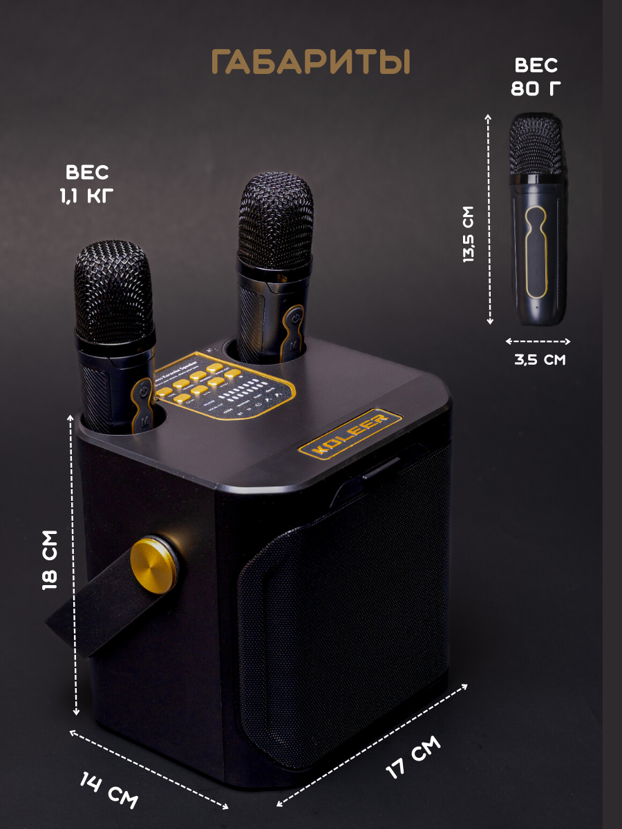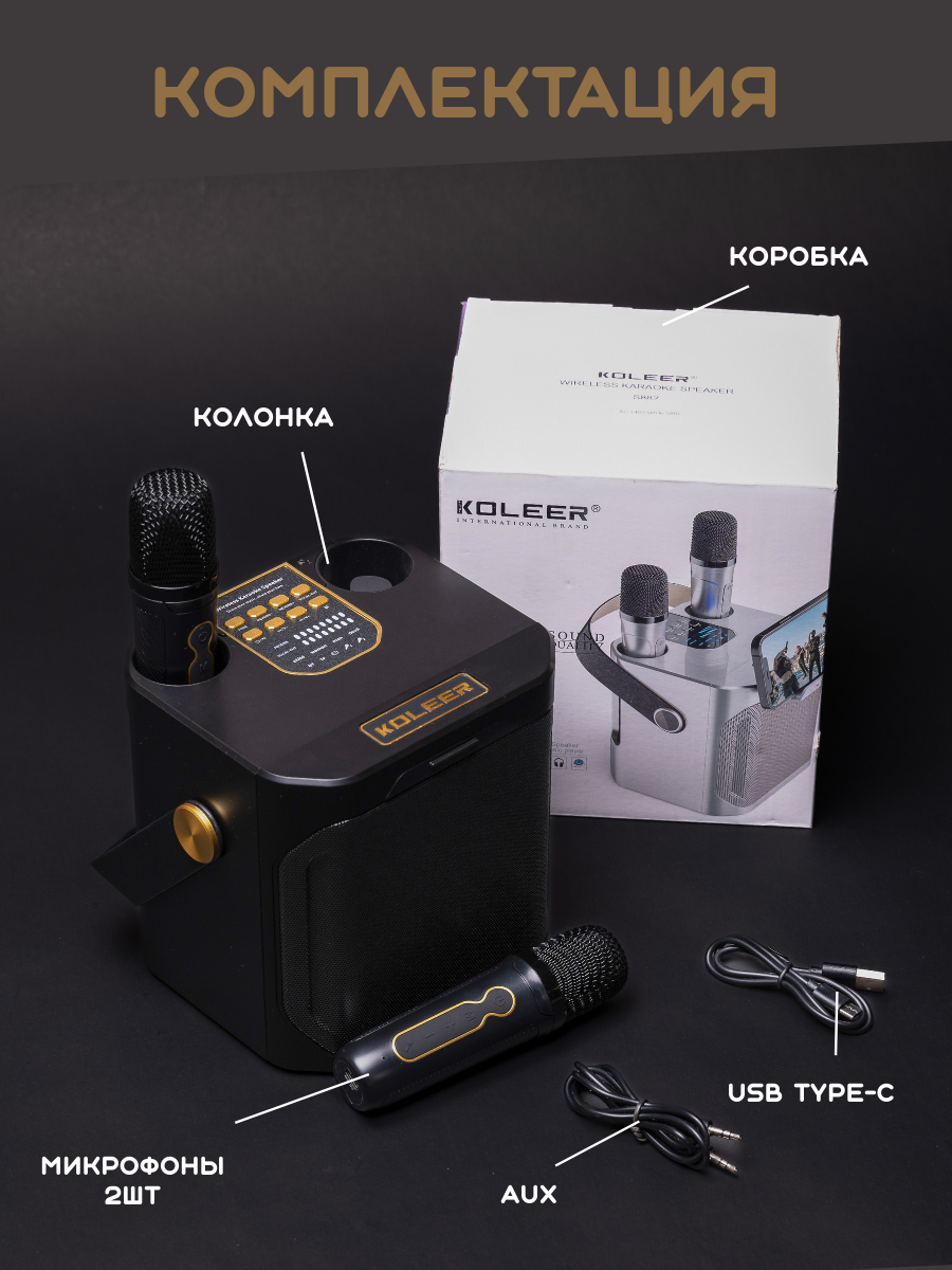 | Подробная комплектация | Караоке система, два микрофона, AUX, Type-C |
