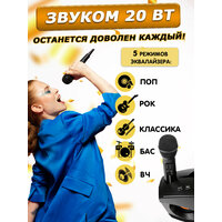 Беспроводная стерео караоке система Magic Karaoke SDRD SD-306 - беспроводная колонка с двумя микрофонами в комплекте. Колонка подключается через блютуз к любому смартфону или планшету. Есть возможность использовать карту памяти либо USB флеш карту. Возможно подключение посредством Aux кабеля. Стереосистема проста в использовании, имеет встроенный аккумулятор и заряжается с помошью USB кабеля, который есть в комплекте. Идеально подходит для тех, кто любит петь дуэтом. Отличный и чистый звук, благодаря мощным динамикам. Особенности: • Поддержка 3D стерео объемного звука, два беспроводных микрофона в комплекте • Удобная подставка для смартфона на колонке • Шесть видов преобразования эффекта эквалайзера (Поп, Рок, Классическая, Бас, ВЧ, Стандарт) • Различные забавные эффекты нажатием кнопки на микрофоне: аплодисменты, свист, смех, толпа, функция удаление вокала из песен • Версия Bluetooth 4.2, высокая эффективность, надежность соединения и скорость передачи Характеристики: • Производитель: SDRD • Модель: SD-306 • Дизайн: Беспроводная стерео колонка с двумя беспроводными микрофонами в комплекте • Версия Bluetooth V4.2 + EDR • Протокол AVRCP, A2DP, HSP / HFP • Совместимость: iPhone 4s / 5 / 5s / 6 / 6 Plus / 6s / 6s Plus / SE / 7 / 7 Plus / 8 / 8 Plus / X / XS / XS Max / XR, iPad mini 2 / mini 4, new iPad, iPad air 1/ 2, iPad Pro, Google Pixel, Google Pixel XL, Samsung Galaxy S4 / S5 / S6 / S6 edge / S7 / S7 edge / S8 / S8+ / S9 / Galaxy Note3 / Note4 / Note5 / Note edge, ZTE Blade V8 Pro, Wileyfox Swift 2, HTC, Lenovo Tab 4 10 Plus, BlackBerry, Sony, LG и др. • Расстояние подключения: 10 м • Мощность колонки: 20W • Каналы: 2 (2.0) • Динамики: 10W*2 • Выходная мощность: 10MW • Частота: 55Hz-20kHz • Соотношение сигнал и шум усилителя: >80дБ, THD = 10% • Сопротивление: 4 Ом • Интерфейс: Micro USB, USB • Поддержка файлов: MP3 • Радио частота: FM87-108MHZ • Температура использования: -10℃ - 45℃ • Источник питания: USB, батарея • Встроенный аккумулятор (колонка): Литий-ионный 18650, 7.4V, 1800 mAh • Встроенный аккумулятор (микрофон): Литий-ионный 18650, 3.7V, 1500 mAh • Время зарядки микрофона: 1-2 часа • Рабочее время: 5~6 часов (при 50% громкости, зависит от интенсивности использования) • Материал: ABS пластик, алюминий • Цвета: золотой, черный, розовый • Размер: 290 х 135 х 145 мм • Вес: 1900 гр Комплектация: • Стерео колонка (база) SD-306 • Беспроводной микрофон *2 шт • Зарядный провод MicroUSB • Аудио кабель AUX 3.5mm/microUSB • Руководство пользователя (англ кит • Упаковка/коробка •