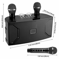 Премиальная портативная караоке система имеет привлекательный классический дизайн, держатели для беспроводных микрофонов. Данная модель отлично подходит как взрослым, так и детям. Её можно использовать как для домашнего использования, так и брать с собой куда угодно, даже на природу, так как она полностью портативная и беспроводная. Время работы аккумулятора до 7 часов. Для воспроизведения музыки: подключите по Bluetooth соединению Ваш смартфон к данной караоке системе. Открываете на телефоне любую музыку, или готовые караоке песни на Youtube - и эта музыка будет проигрываться через встроенные колонки караоке системы.