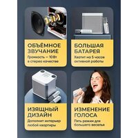 Премиальная портативная караоке система имеет привлекательный классический дизайн, держатели для беспроводных микрофонов. Данная модель отлично подходит как взрослым, так и детям. Её можно использовать как для домашнего использования, так и брать с собой куда угодно, даже на природу, так как она полностью портативная и беспроводная. Время работы аккумулятора до 7 часов. Для воспроизведения музыки: подключите по Bluetooth соединению Ваш смартфон к данной караоке системе. Открываете на телефоне любую музыку, или готовые караоке песни на Youtube - и эта музыка будет проигрываться через встроенные колонки караоке системы.