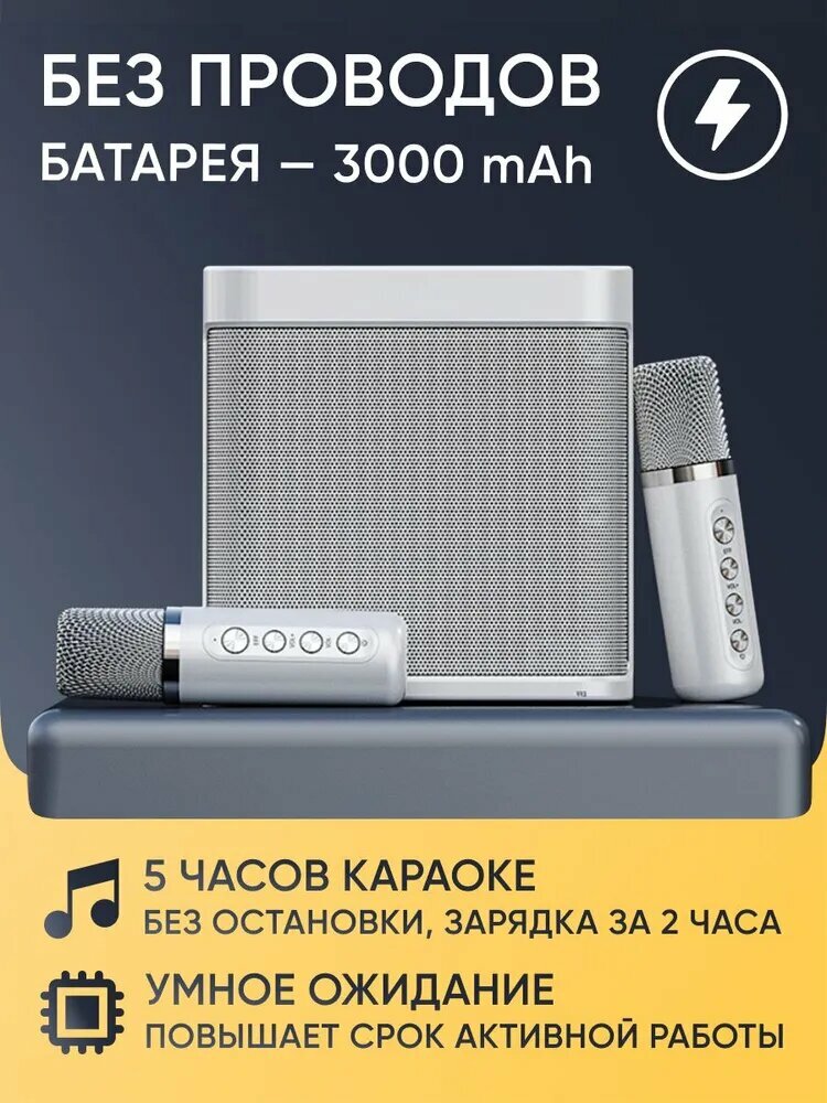 Беспроводная караоке система SU YOSD - это портативная караоке система с двумя беспроводными микрофонами. Подключение по Bluetooth соединению к любому смартфону.
