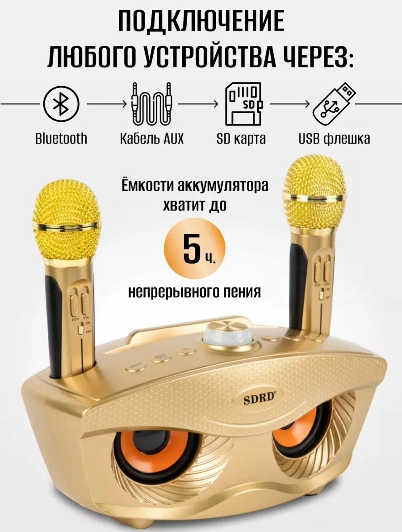 Купить Караоке-система SDRD SD 306 Gold, с радиомикрофонами, Bluetooth, Золотая с доставкой по всей России.