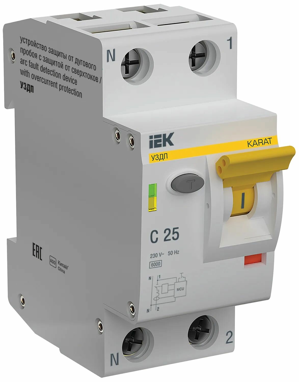 KARAT Устройство защиты от дугового пробоя c автоматическим выключателем 1P+N C 25A IEK KA-DP11-1-025-C: сравнение цен, характеристики, фото, актуальное наличие и цены.