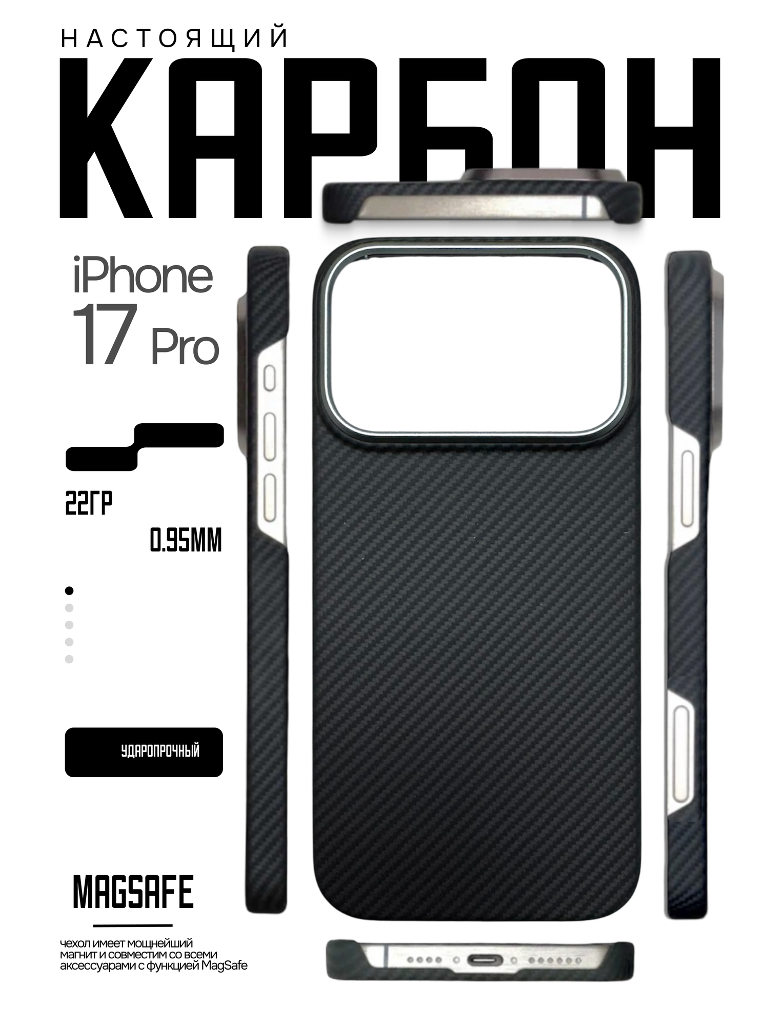 Чехол карбоновый для iPhone 17 Pro , с поддержкой беспроводной зарядки, сверхпрочный, лёгкий: сравнение цен, характеристики, фото, актуальное наличие и цены.