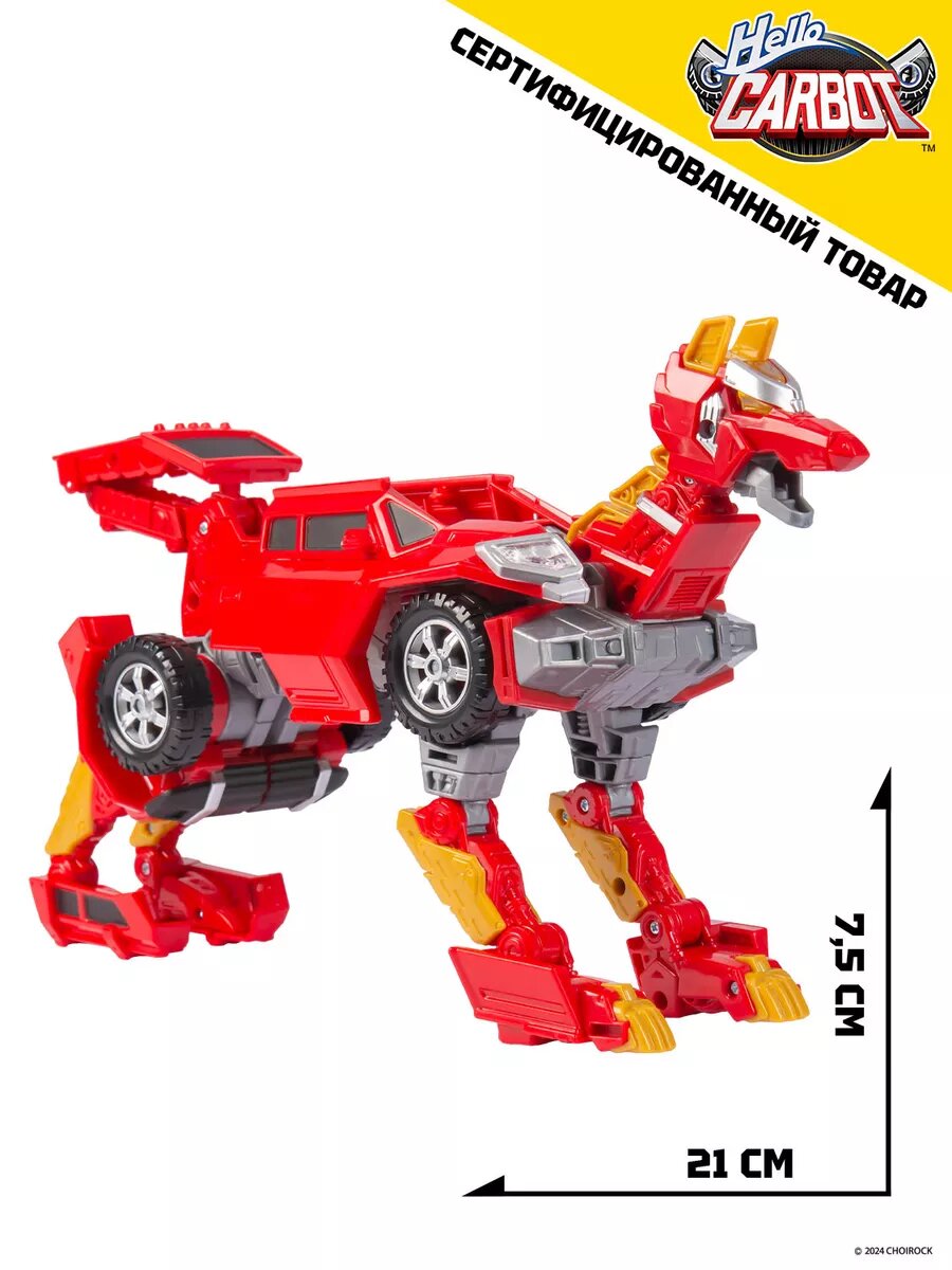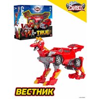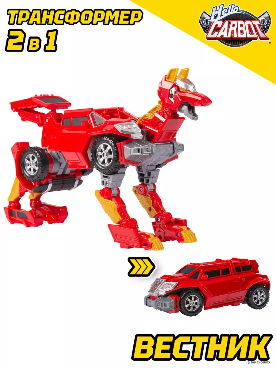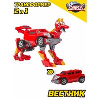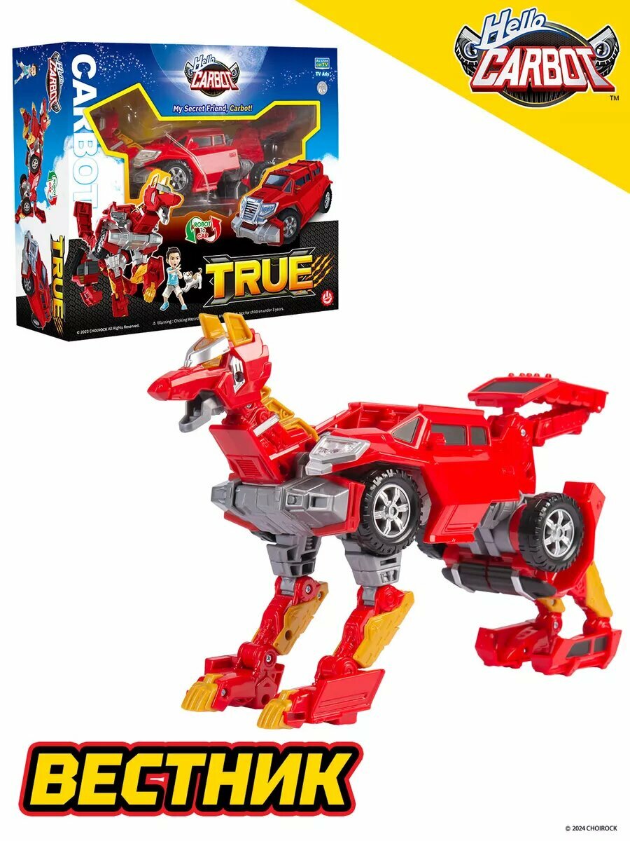 Карбот Вестник, длиной 21 сантиметр, трансформируется в стильное красное авто - кибертрак на свободном ходу. Вестник - уникальный трансформер в виде волка.