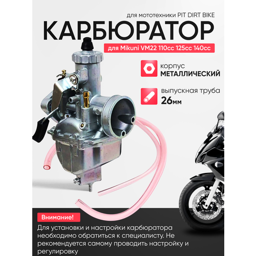 Карбюратор Mikuni VM22 (аналог) для мототехники PIT DIRT BIKE 110cc 125cc 140cc – компонент, специально разработанный для внедорожных мотоциклов с объемом двигателя 110, 125 и 140 куб. см. С 26-миллиметровой впускной трубой карбюратор обеспечивает оптимальную подачу топлива, что позволяет двигателю работать на пике производительности.
