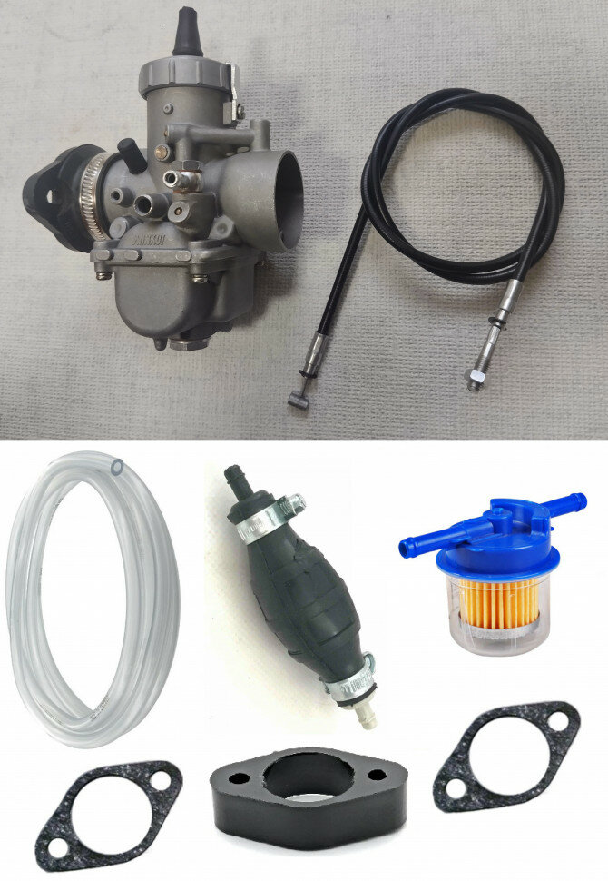в комплекте - трос газа, переходник, бензошланг 1м, бензофильтр, прокладки, проставка термоизоляционная