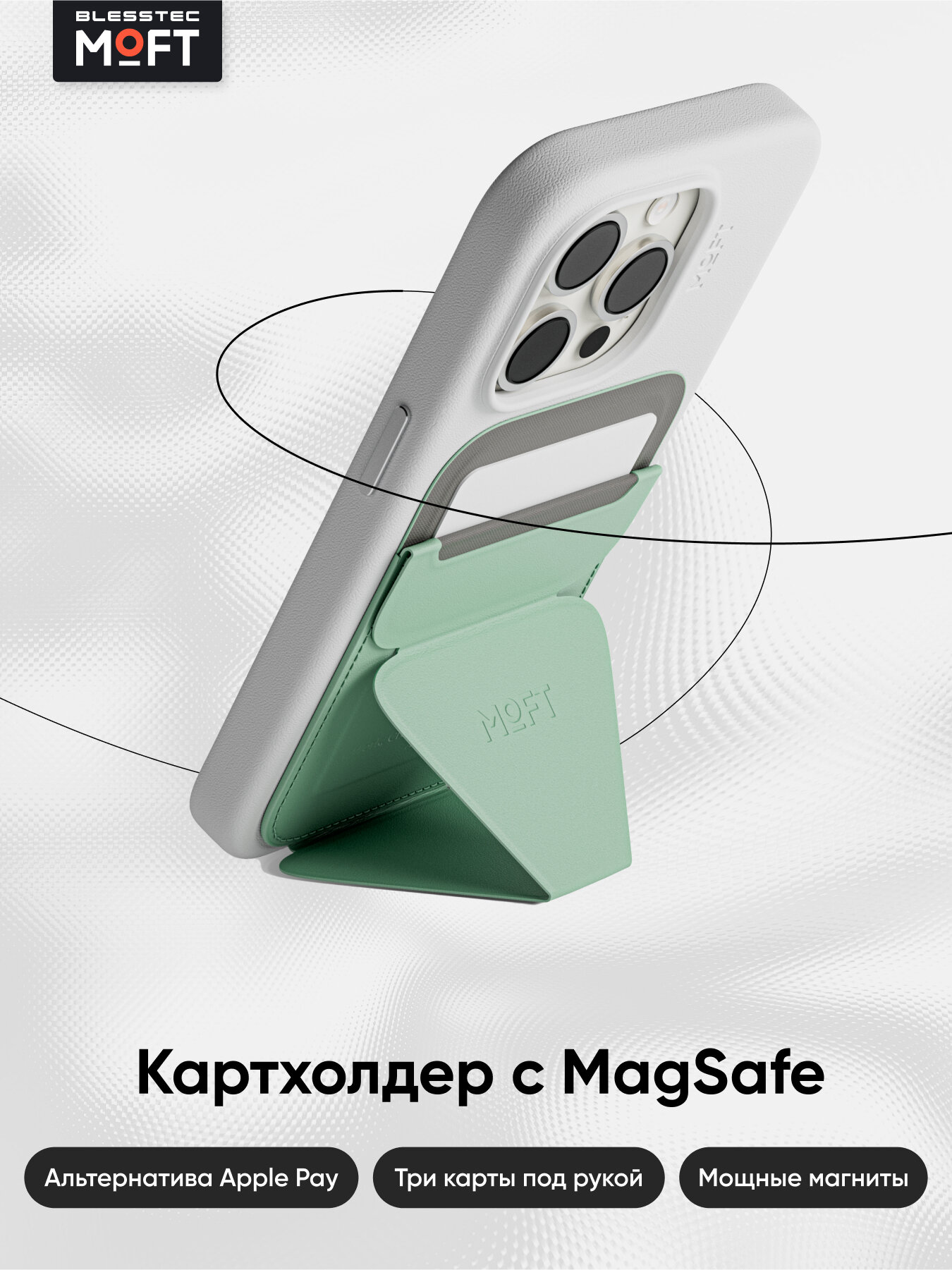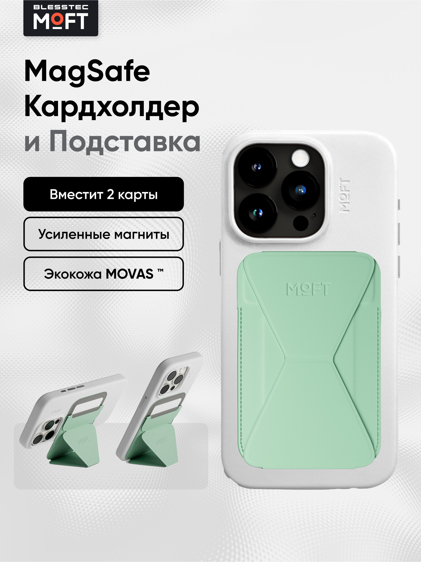 Купить Кардхолдер и Подставка для телефона с усиленными магнитами MOFT Snap On Premium l MagSafe l Вмещает 2 карты l Peppermint с доставкой по всей России.