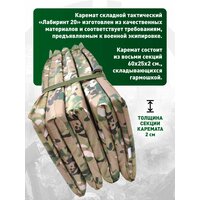 Каремат складной тактический «Лабиринт 20» изготовлен из качественных материалов и соответствует требованиям, предъявляемым к военной экипировке. Каремат состоит из восьми секций 60х25 см, складывающихся гармошкой.