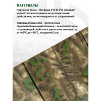 Наружная ткань - Оксфорд 210 D; PU, обладает водоотталкивающими и ветрозащитными свойствами, легко очищается от загрязнений.