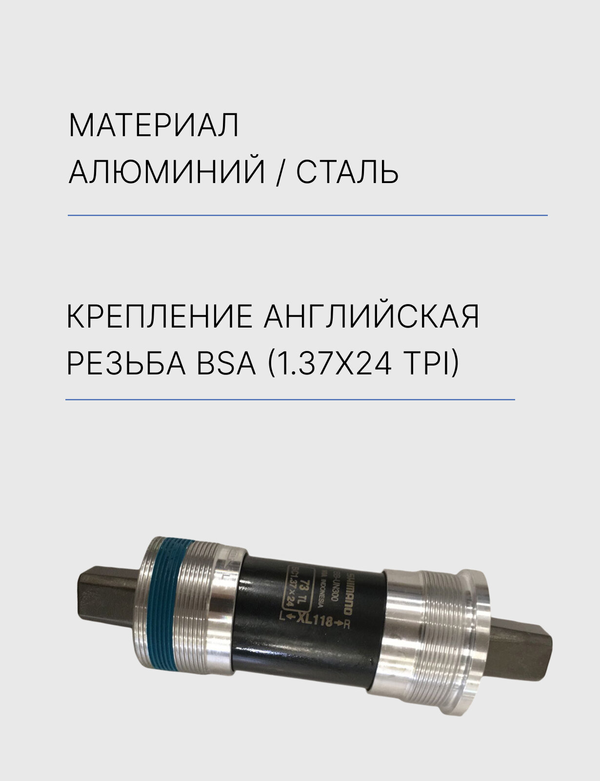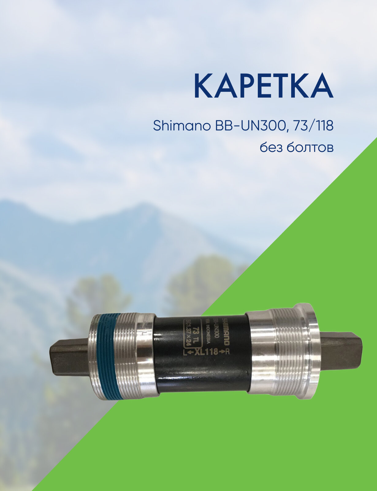 Каретка Shimano UN 300 73/XL118 мм без болтов без упаковки ABBUN300C18X. Под квадрат, размер 73/118 мм, без болтов, без упаковки. Для городских и прогулочных велосипедов. Квадратный шпиндель 73 мм Shimano BB-UN300, нижние кронштейны. Функции: подходит для систем JIS с квадратным конусом. Болты крепления шатуна продаются отдельно. Полый шпиндель. Технические характеристики: рама интерфейс - БСА / английский каскадный; шпинделя интерфейс - квадратный конус JIS; каретка Shell ID - 1,37. Shell ширина - 73 мм; шпиндель длиной 118 мм.