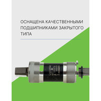 Shimano BB-UN300 (D-EL) - это качественная каретка любительского класса, разработанная для горных велосипедов. Чашки выполнены из алюминия. На них нарезана резьба английского типа BSA (1.37x24 tpi). Каретка оснащена долговечными подшипниками закрытого типа. Длина кареточного вала составляет 127,5 мм. Под кареточный стакан шириной 68 мм. Крепление шатунов: под квадрат. Цвет: серый.