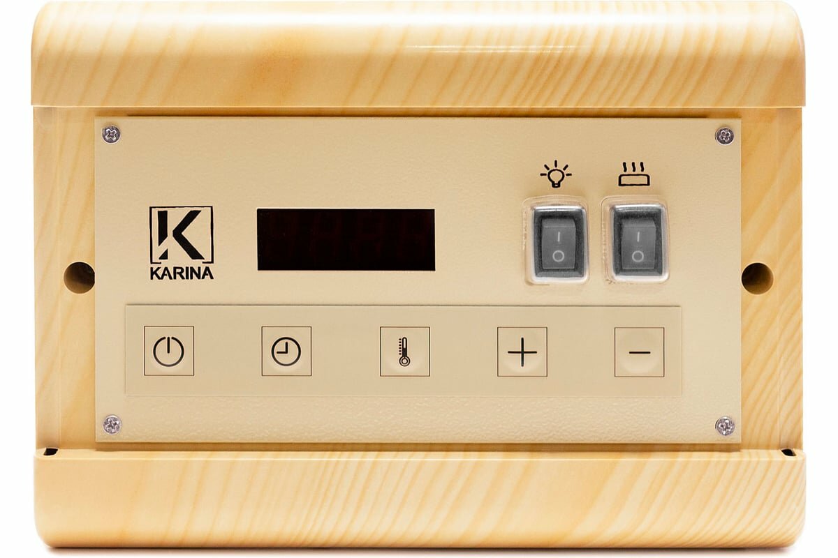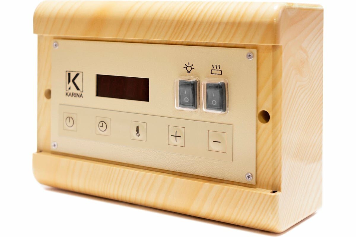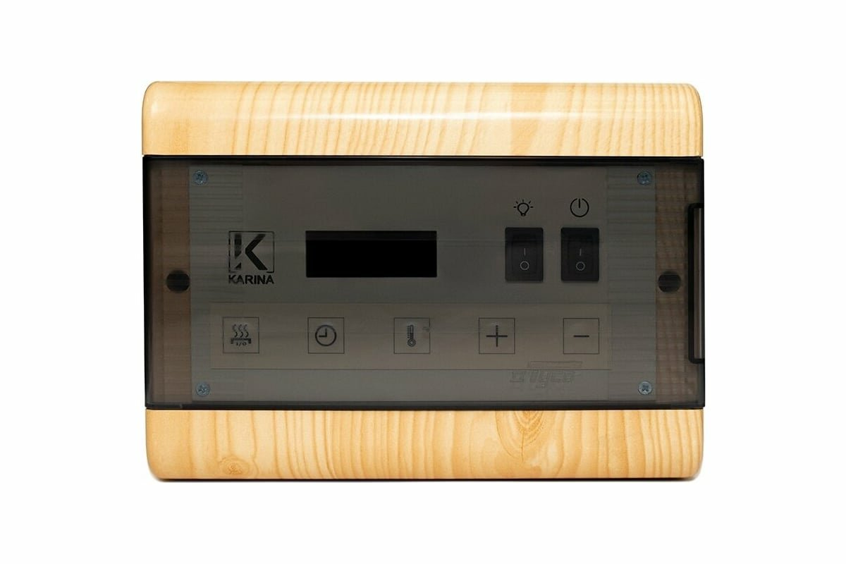 Пульт управления Karina Case C15 Wood Ca-15kW-Wd используется для автоматического управления электрокаменкой. Данный прибор рассчитан для электрокаменок, мощность которых не превышает 15 кВт. Монтаж может осуществляться снаружи парильного помещения. Дополнительные технические характеристики: Потребляемая мощность - 10 Вт Рабочая температура воздуха - от -55 до +125°С. Настройка температуры: да. Индикация температуры: да. Поддержание температуры: да. Счетчик времени работы: да. Настройка времени: да. Автоматическое отключение: да. Материал корпуса: пластик. Мах подключаемая нагрузка: 15 кВт. Высота: 175 мм. Ширина: 230 мм. Глубина: 95 мм.