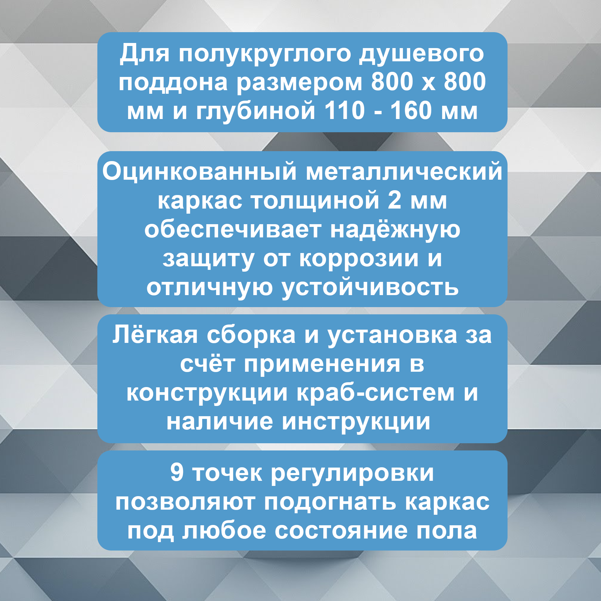 Купить Каркас для полукруглого душевого поддона 800х800 с доставкой по всей России. Каркас для полукруглого душевого поддона 800х800: сравнение цен, характеристики, фото, актуальное наличие и цены.