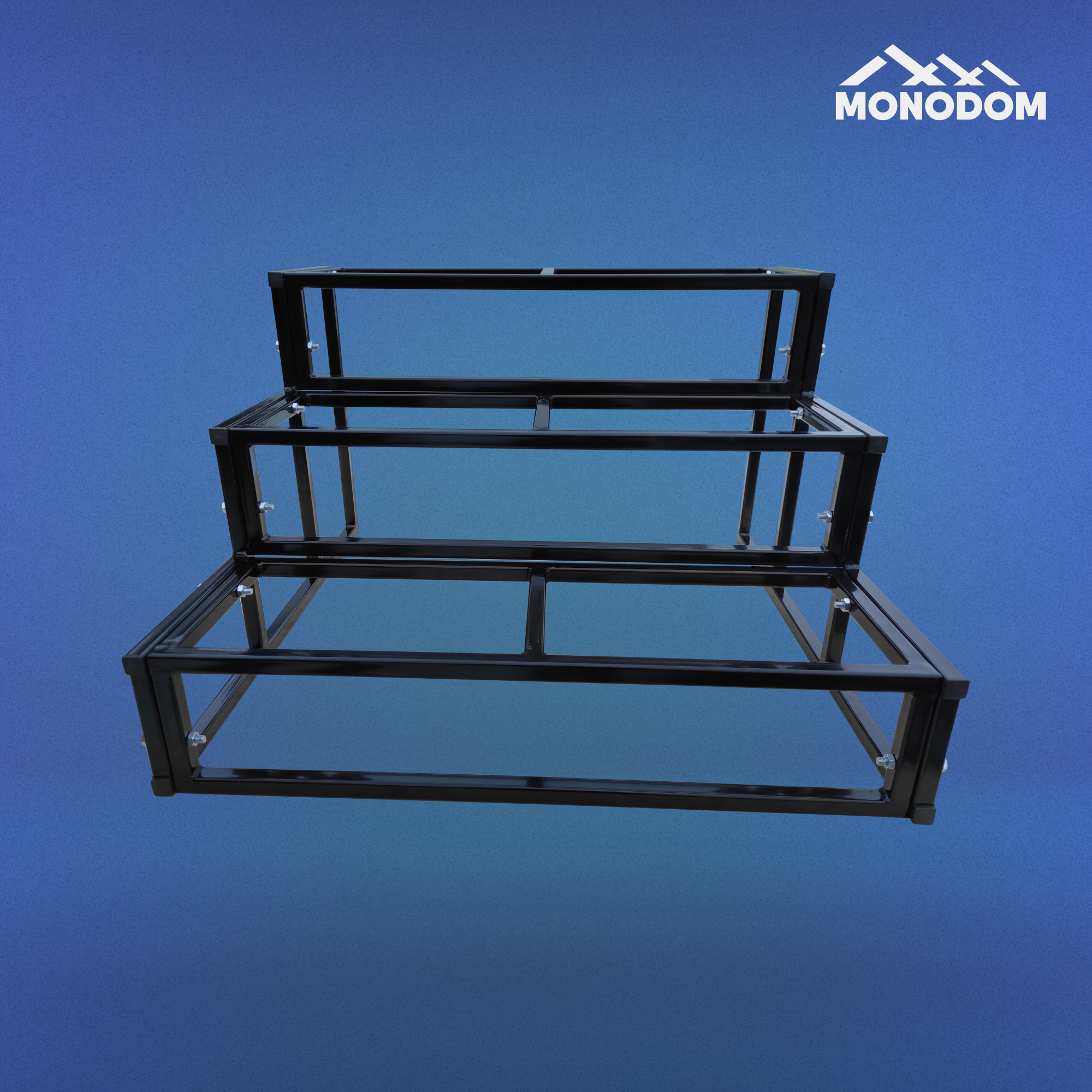 Каркас крыльца 3 ступени усиленный от монодом - это стильное и надежное решение для вашего дома. Выполненный из металла толщиной 2 мм и размером 25 х 25 мм, каркас обеспечивает прочность и долговечность, а порошковая окраска в черный глянцевый цвет RAL9005 придает изделию современный вид.