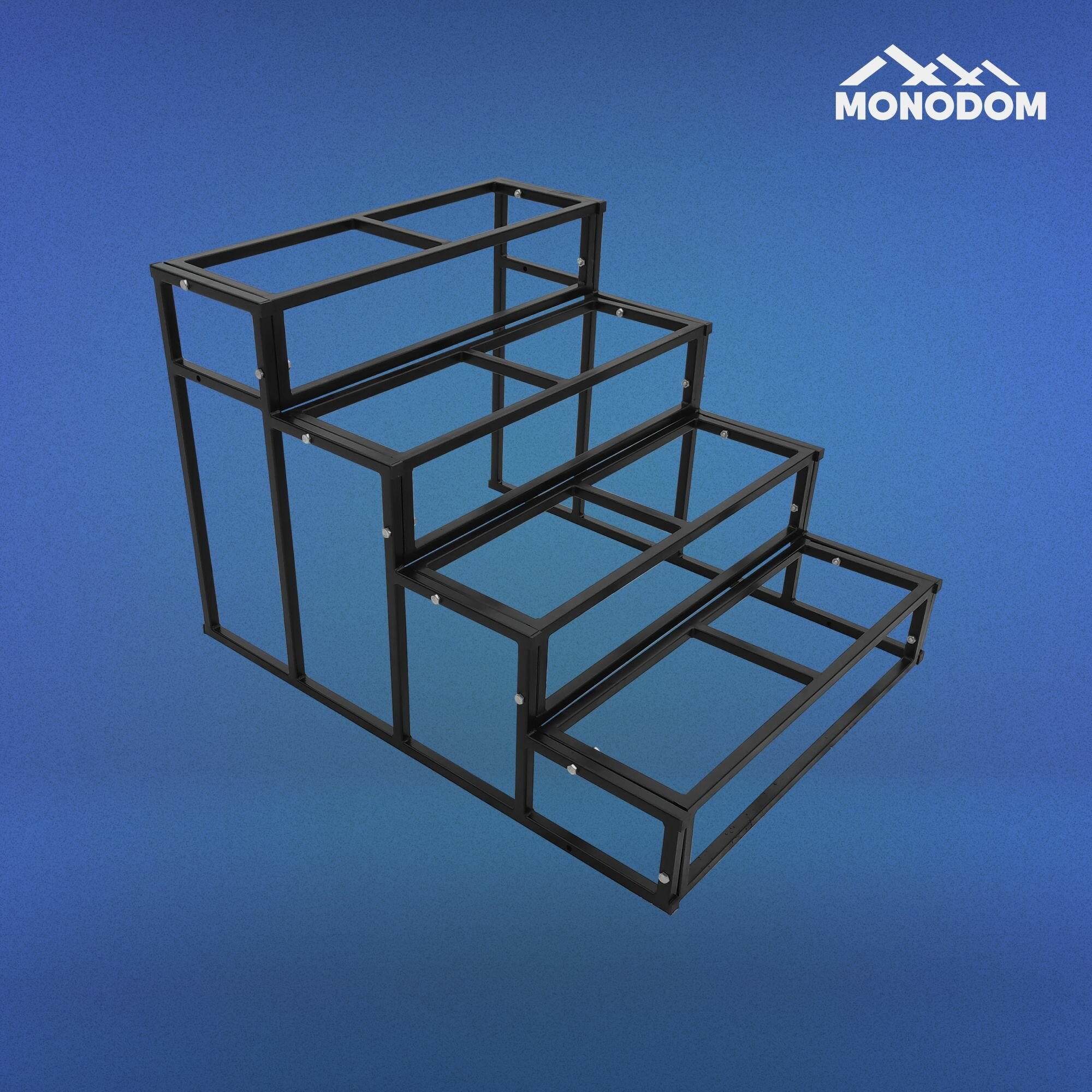 Каркас крыльца изготовлен из стали толщиной 1.6 мм и размером 25 х 25 мм. Порошковая окраска в черный матовый цвет RAL9005 придает изделию стильный и современный вид.