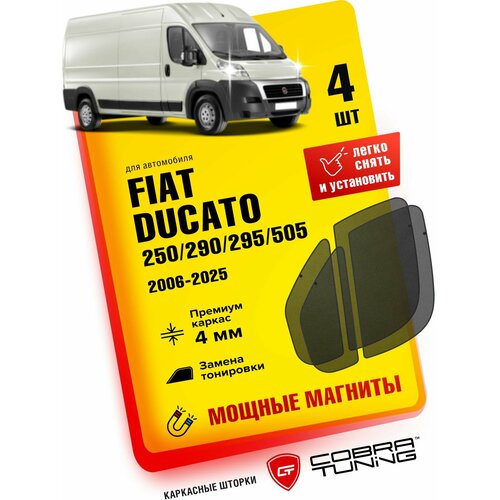 Каркасные солнцезащитные шторки на магнитах повторяют изгибы оконного проема автомобиля Fiat Ducato 250, 290, 295, 505 (Фиат Дукато) 2006-2025, на передние боковые окна. Устанавливается данный аксессуар в оконную раму передних дверей, крепится на магнитах. Магниты идут встроенные в шторку, не нужно приклеивать магниты на дверь, надо всего лишь шторку прислонить к оконной раме, и шторка притянется к двери.