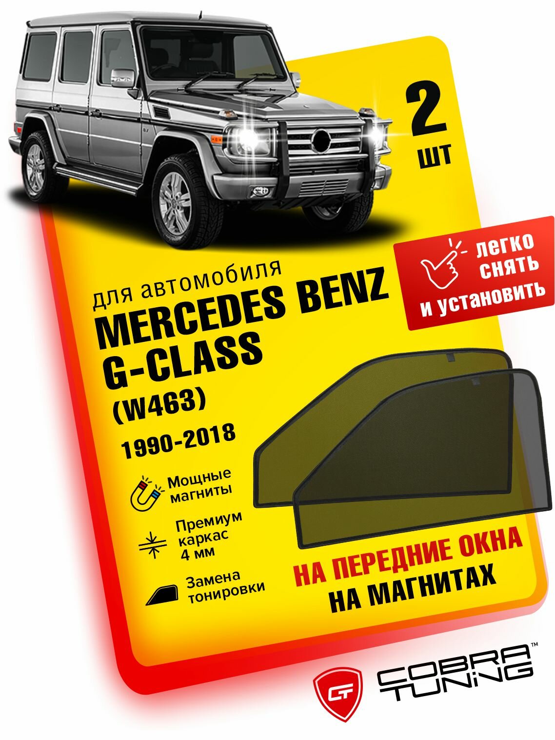 Каркасные шторки на магнитах для автомобиля Mercedes Benz G-class (Мерседес Бенц Г-Класс) (W463) 1990-2018, автошторки на передние стекла, Cobra Tuning — 2 шт.: сравнение цен, характеристики, фото, актуальное наличие и цены.