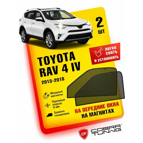 Каркасные солнцезащитные шторки на магнитах повторяют изгибы оконного проема автомобиля Toyota Rav 4 IV (Тойота Рав 4) 5-ти дверный 2013-2018г, на передние боковые окна. Устанавливается данный аксессуар в оконную раму передних дверей, крепится на магнитах. Магниты идут встроенные в шторку, не нужно приклеивать магниты на дверь, надо всего лишь шторку прислонить к оконной раме, и шторка притянется к двери.
