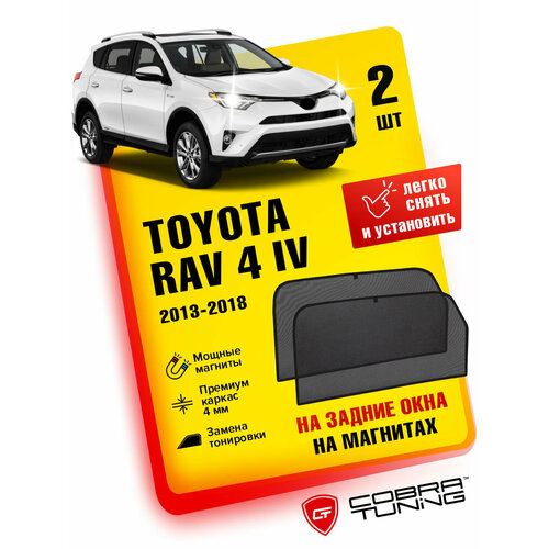 Каркасные солнцезащитные шторки на магнитах повторяют изгибы оконного проема автомобиля Toyota Rav 4 IV (Тойота Рав 4) 2013-2019 на задние боковые окна. Устанавливается данный аксессуар в оконную раму задних дверей, крепится на магнитах. Магниты идут встроенные в шторку, не нужно приклеивать магниты на дверь, надо всего лишь шторку прислонить к оконной раме, и шторка притянется к двери.