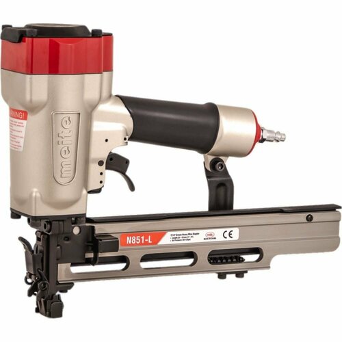 Скобозабивной пневматический пистолет meite N851-L это промышленная модель инструмента для каркасных скоб большого сечения, "стреляющий" мебельной скобой калибра 16Ga, спинка 10,8 мм длина от 25 мм до 50 мм, Либо скобой калибра 17Ga спинка 10,5. Применяется в первую очередь при изготовлении мебельных каркасов, рамок, опбрешеток и прочих деревянных изделий в специально организованных местах как внутри помещений, так и на открытом воздухе с переменной влажностью и минусовой температурой. Высокая производительность. Степлер надежен и прост в эксплуатации, работа с ним не требует специальных знаний и навыков. Используемые скобы: тип M2 (M1), Bea 155, Prebena L (LM), Senco N