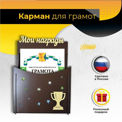 Карман для грамот, медалей и наград с кубком, цвет венге: сравнение цен, характеристики, фото, актуальное наличие и цены.