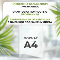 Карман для стенда А4 (230х310 мм) без канта со скотчем, плоский настенный, вертикальный, прозрачный, ПЭТ 0,3 мм, 100 шт, Velar: сравнение цен, характеристики, фото, актуальное наличие и цены.