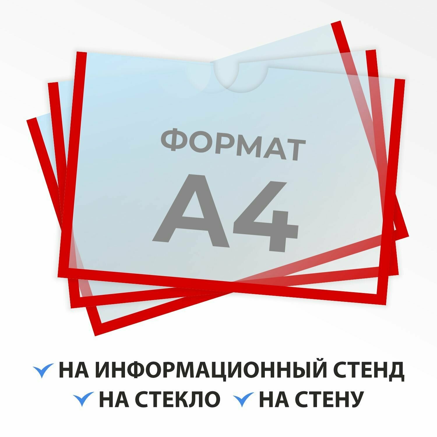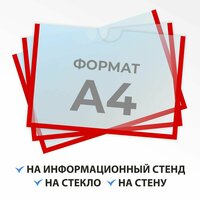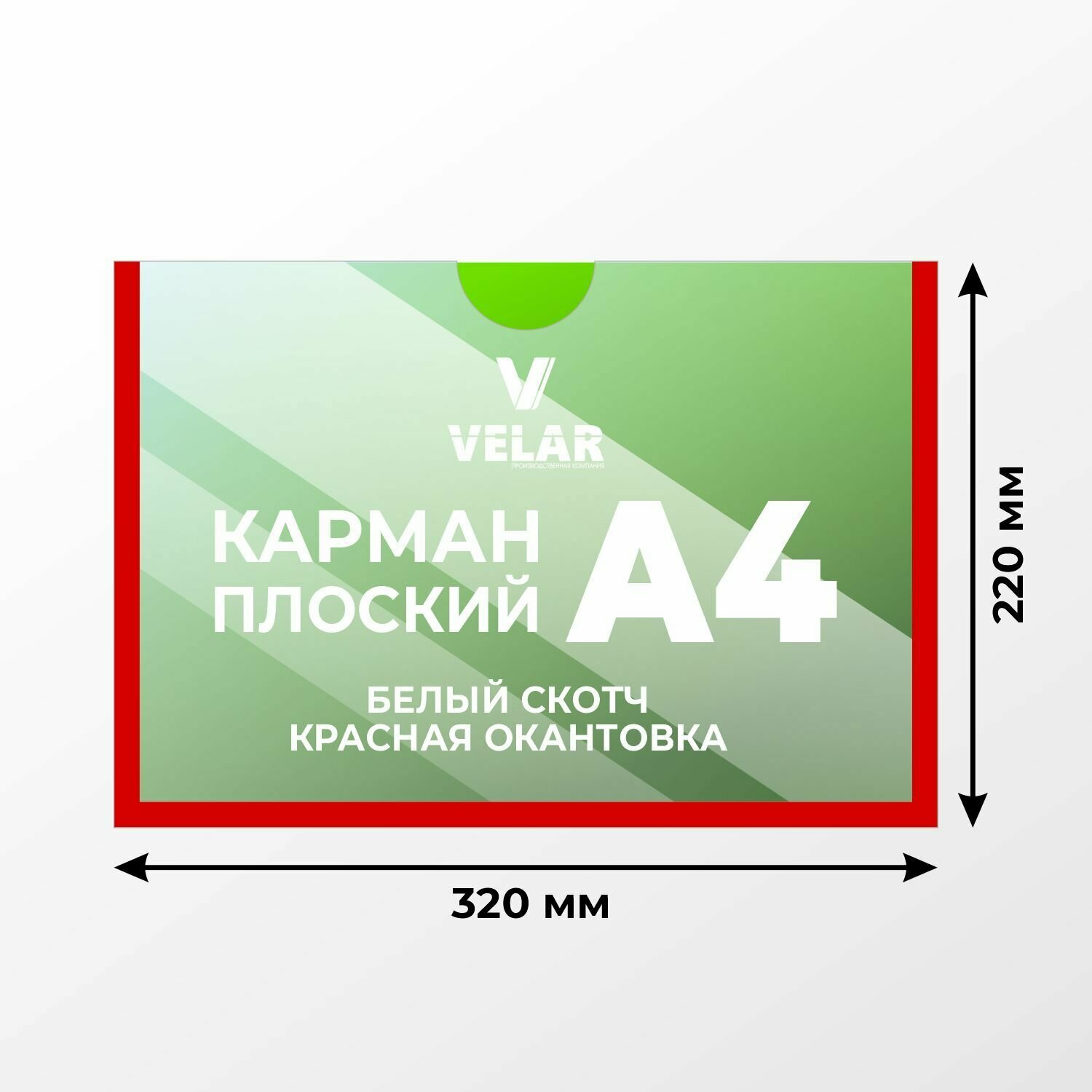 Карман информационный Velar для стенда А4 (297х210 мм) со скотчем, красный кант, плоский настенный, прозрачный горизонтальный, ПЭТ 0,3 мм, 100 шт: сравнение цен, характеристики, фото, актуальное наличие и цены.