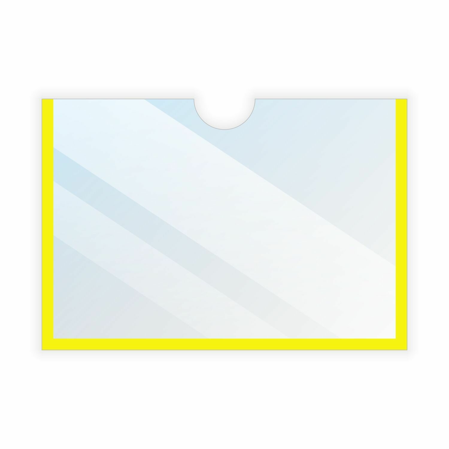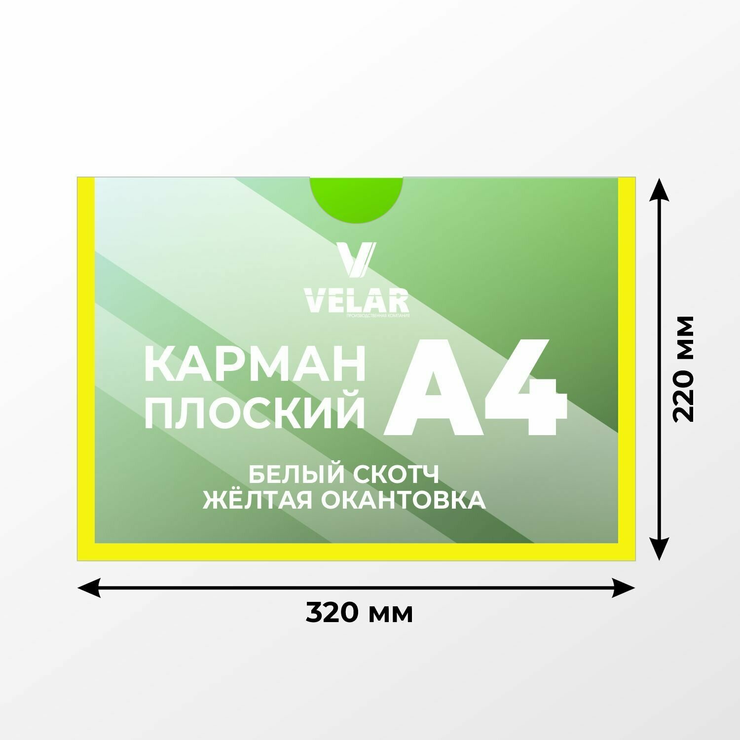 Карман информационный Velar для стенда А4 (297х210 мм) со скотчем, желтый кант, плоский настенный, прозрачный горизонтальный, ПЭТ 0,3 мм, 100 шт: сравнение цен, характеристики, фото, актуальное наличие и цены.