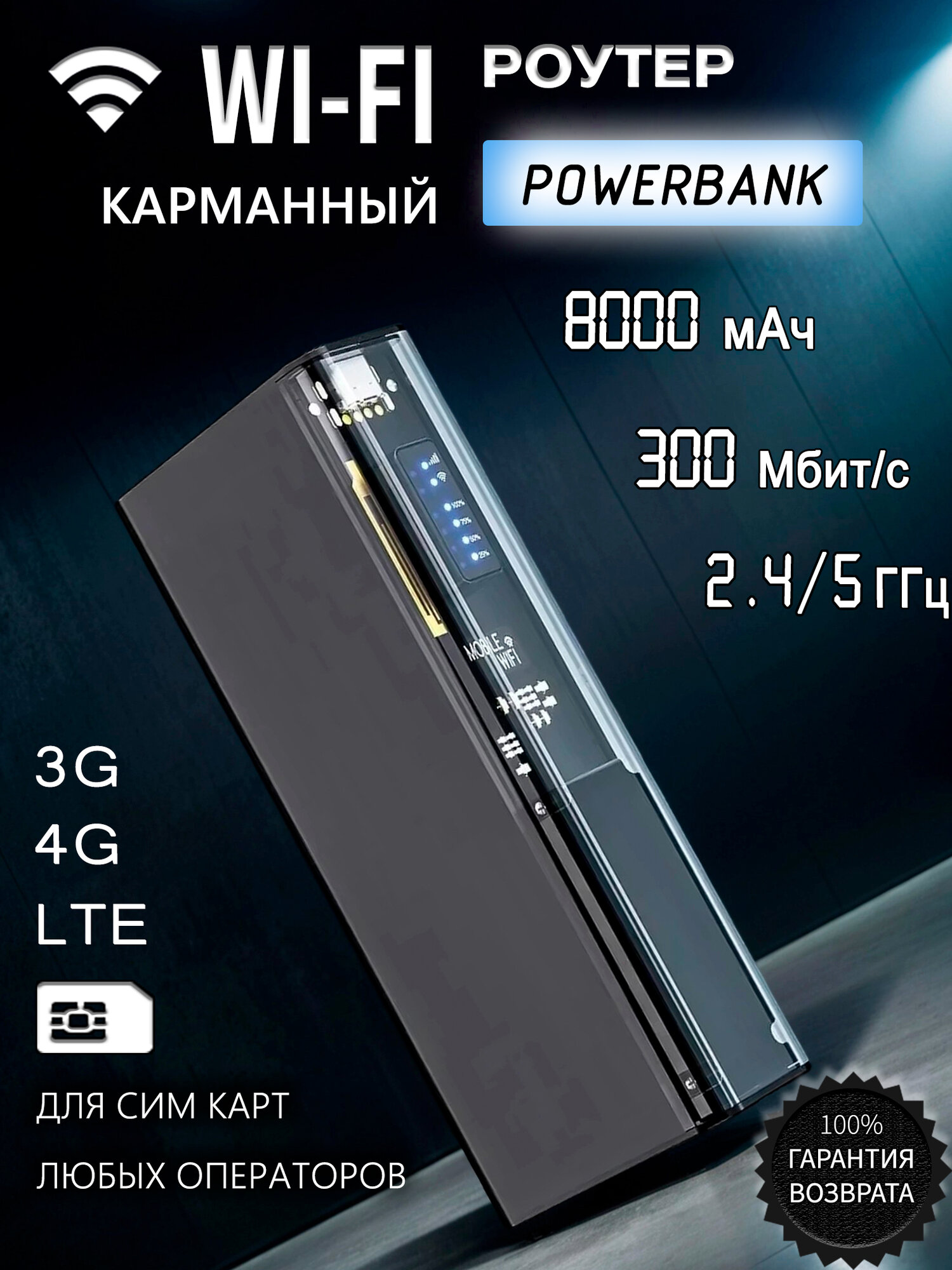 Карманный беспроводной Wi-Fi Роутер 5ГГц, со слотом для сим карт, PowerBank 8000 мАч: сравнение цен, характеристики, фото, актуальное наличие и цены.