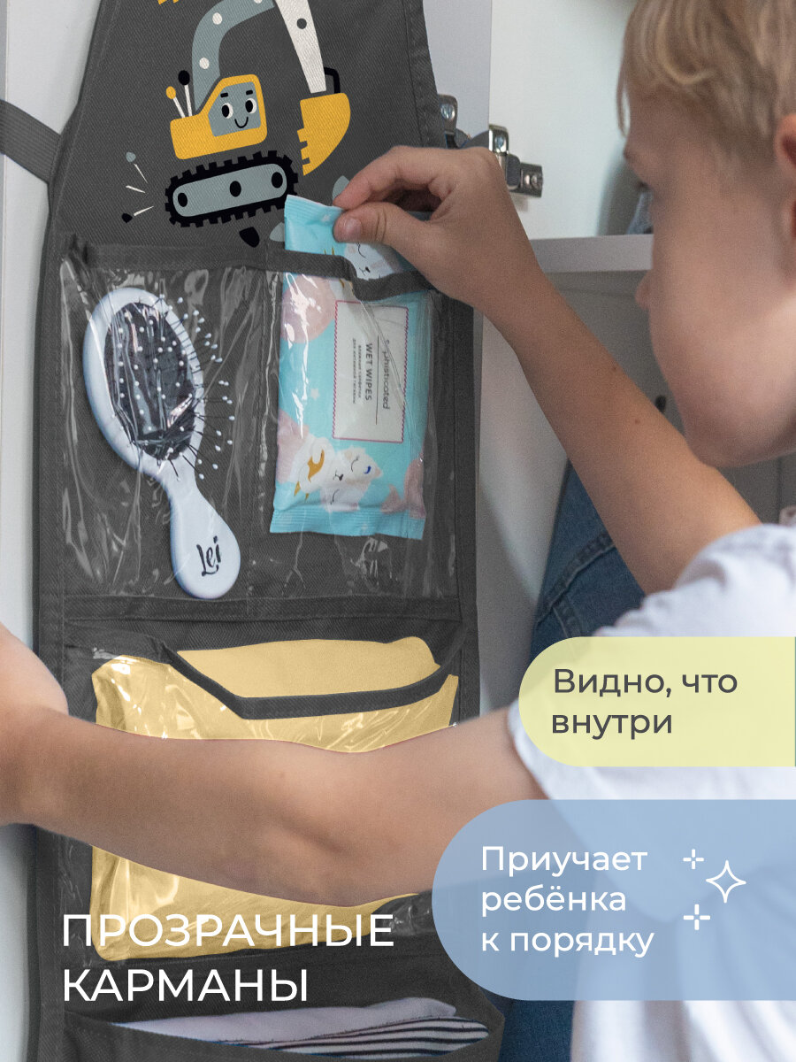 Кармашки в шкафчик Всё на местах «Экскаватор» для детского сада 83×24 см, серые: сравнение цен, характеристики, фото, актуальное наличие и цены.