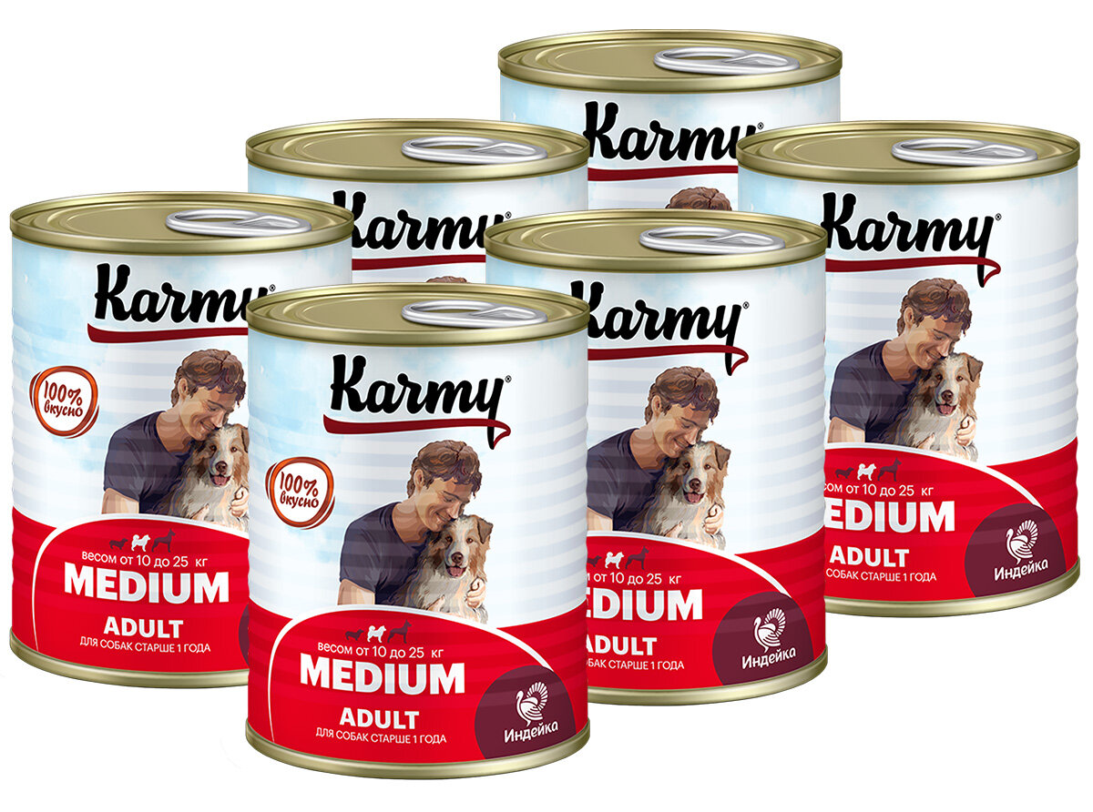Консервированный корм KARMY с индейкой - такой мясной и сытный - помогает легко и просто поддерживать активную и долгую здоровую жизнь Вашей собаки.