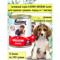 KARMY MEDIUM Junior Полнорационный консервированный корм для щенков средних пород с ягненком, 340*12шт