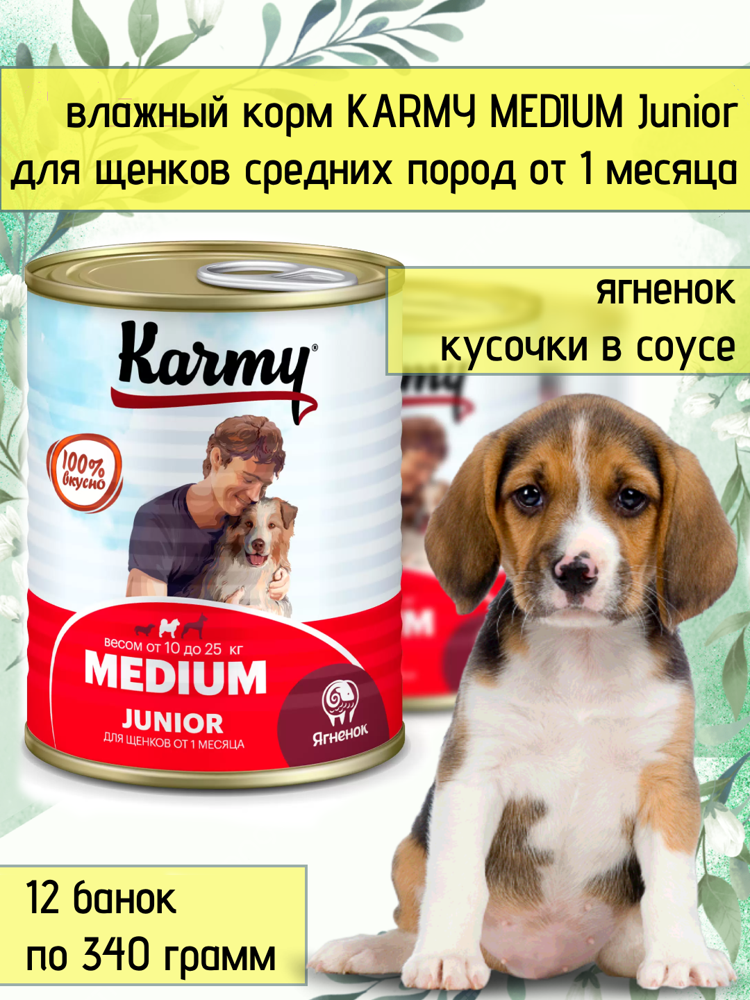 KARMY MEDIUM Junior Полнорационный консервированный корм для щенков средних пород с ягненком, 340*12шт: сравнение цен, характеристики, фото, актуальное наличие и цены.