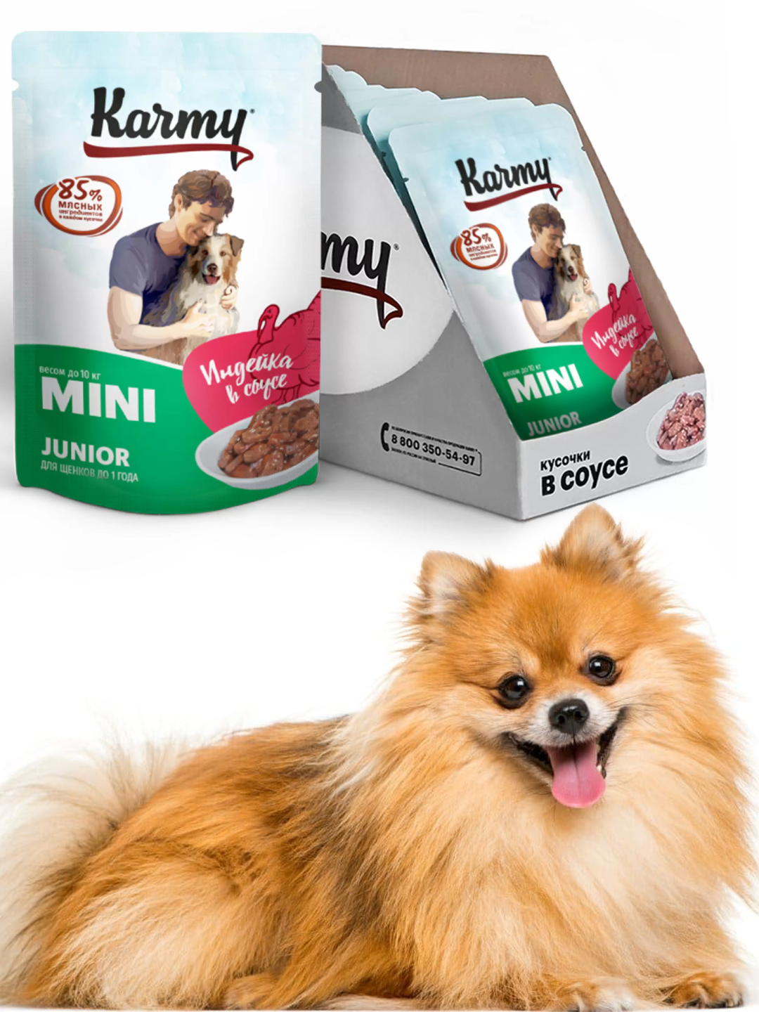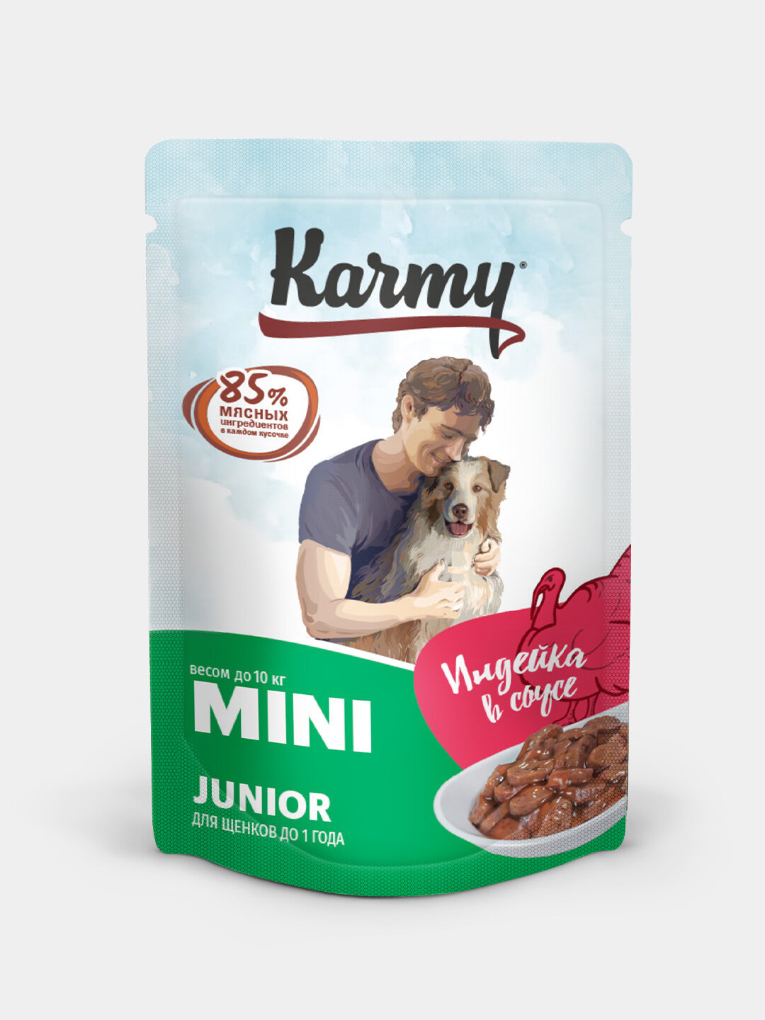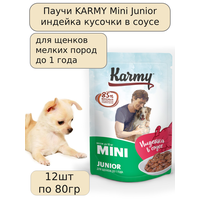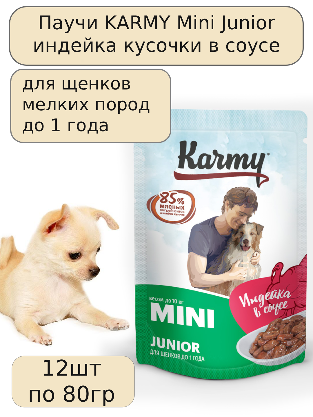 KARMY Mini Junior влажный корм для щенков мелких пород в возрасте до 1 года Индейка кусочки в соусе 80г*12шт: сравнение цен, характеристики, фото, актуальное наличие и цены.