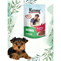 Купить KARMY Mini Junior влажный корм для щенков мелких пород в возрасте до 1 года Индейка кусочки в соусе 80г*12шт с доставкой по всей России.