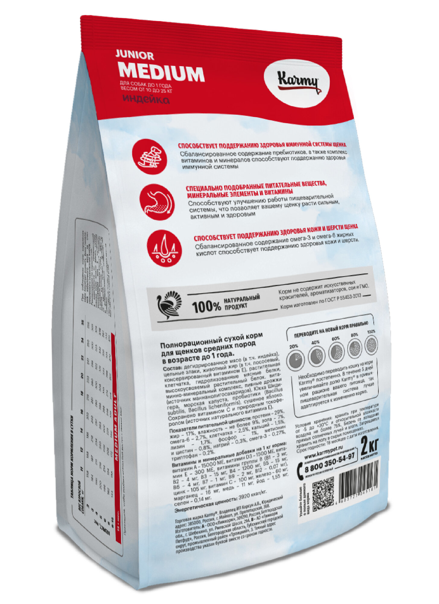 Karmy полнорационный сухой корм для щенков средних пород, с индейкой, 2кг: сравнение цен, характеристики, фото, актуальное наличие и цены.