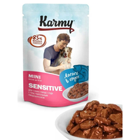 Купить KARMY Sensitive влажный корм для собак мелких пород с чувствительным пищеварением старше 1 года Лосось кусочки в соусе 80г*12шт с доставкой по всей России.