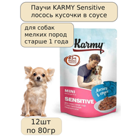 KARMY Sensitive влажный корм для собак мелких пород с чувствительным пищеварением старше 1 года Лосось кусочки в соусе 80г*12шт