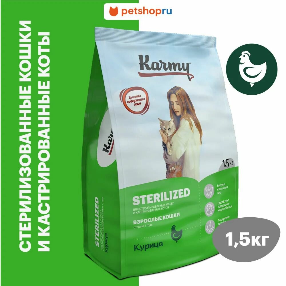 Купить Karmy Сухой корм для стерилизованных кошек и кастрированных котов, с курицей, Sterilised, 1,5 кг с доставкой по всей России.
