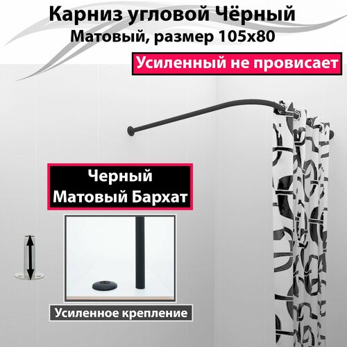Купить Карниз для душа, поддона 105×80см Г-образный, угловой Усиленный Люкс, цельнометаллический черного цвета с доставкой по всей России. Карниз для душа, поддона 105×80см Г-образный, угловой Усиленный Люкс, цельнометаллический черного цвета: сравнение цен, характеристики, фото, актуальное наличие и цены.